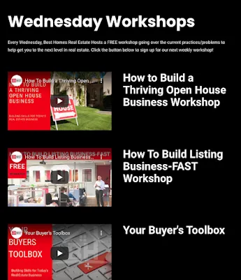 Every Wednesday we have a workshop at 10am covering various topics to help you grow your business. You will be introduced to new concepts, and be given proven methods to succeed in real estate!